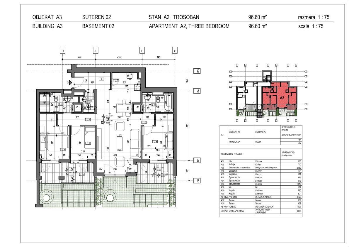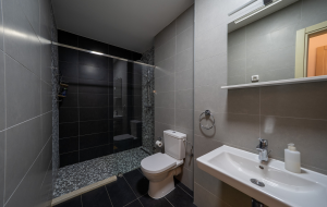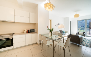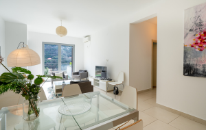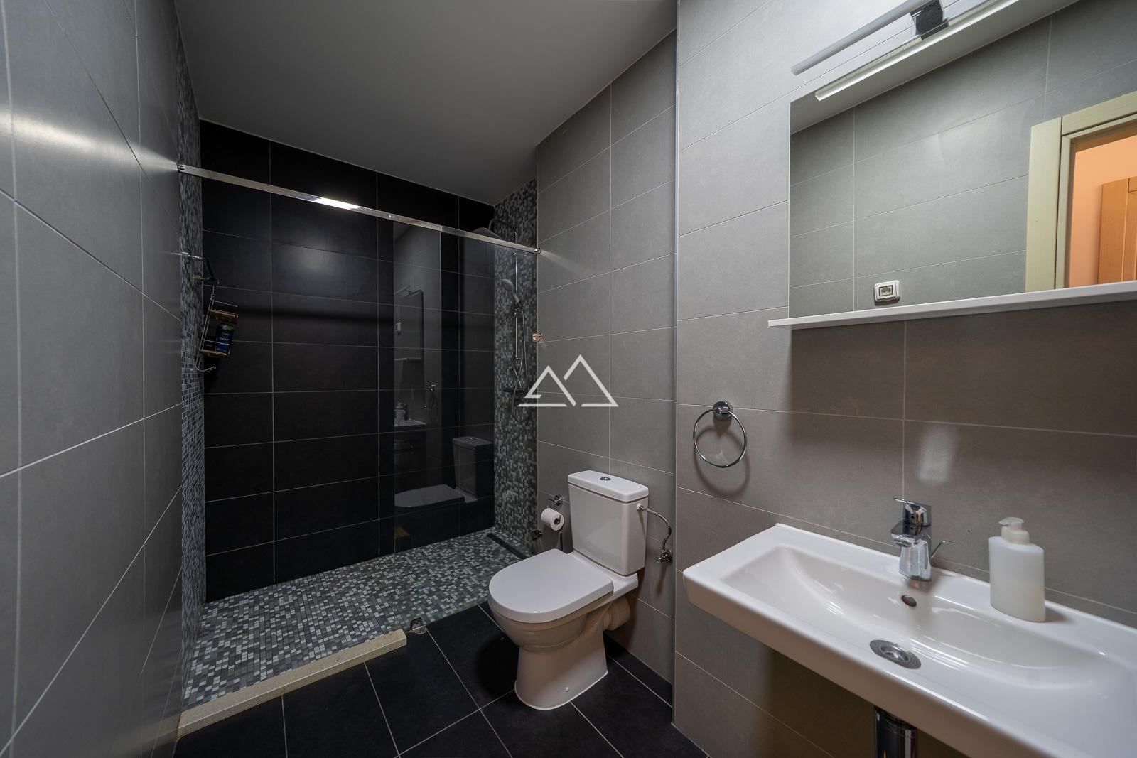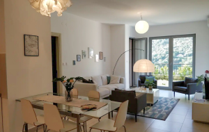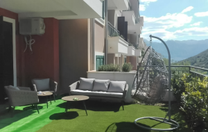 The apartment consists of a spacious living room with kitchen and dining area, three bedrooms, two bathrooms, toilet and a terrace with beautiful mountain and sea views.