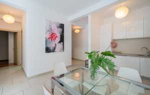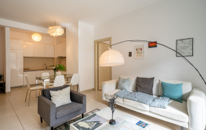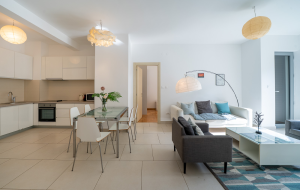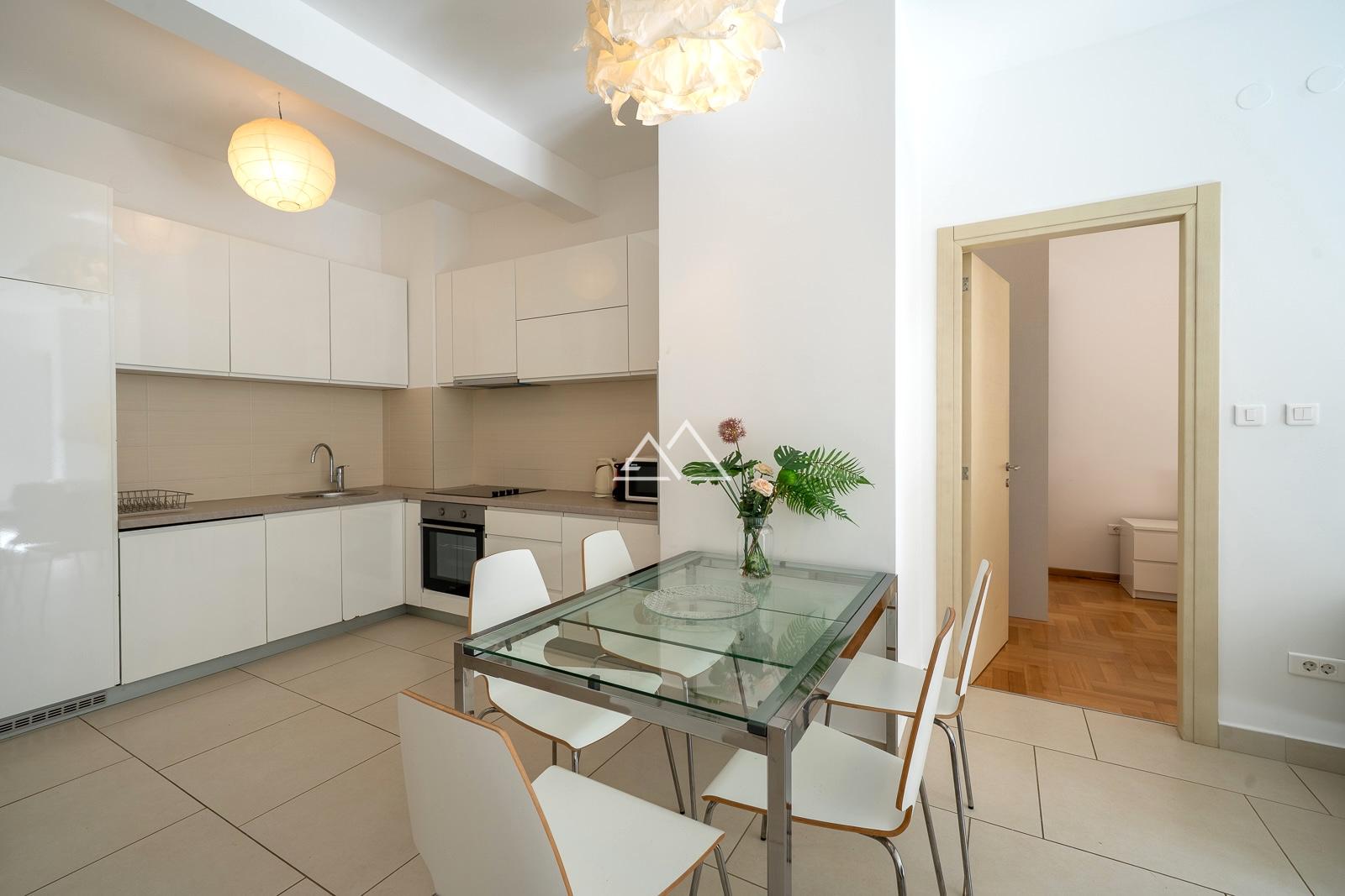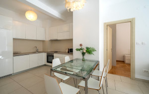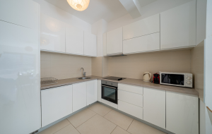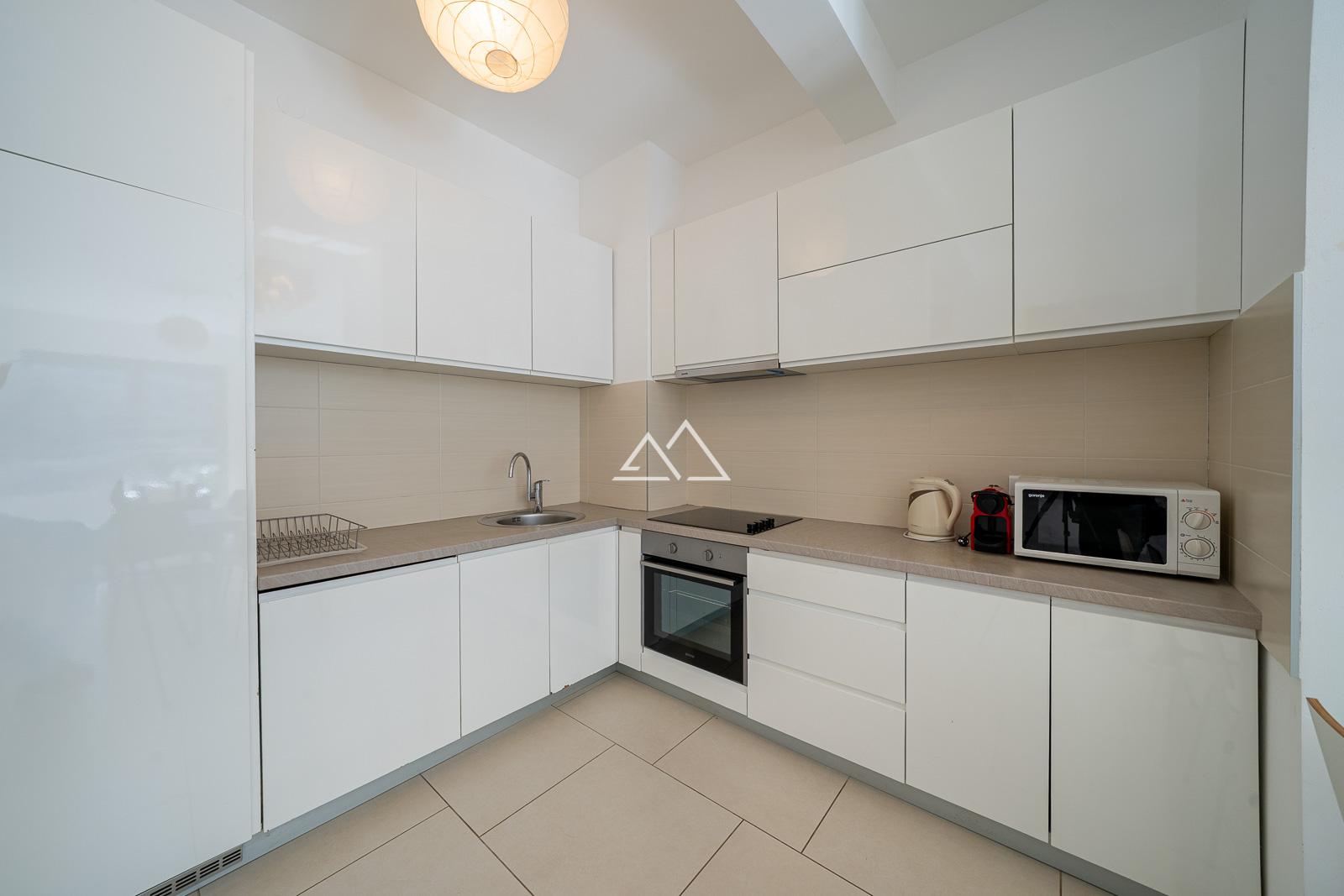 The apartment is fully furnished, equipped with household appliances and is ready for living or renting out. All rooms are air conditioned. There is underfloor heating in the kitchen and bathrooms. The fully equipped kitchen includes granite worktop and built-in appliances. The bedrooms have oak parquet flooring, the living room and bathrooms - Italian ceramics. All windows have shutters.