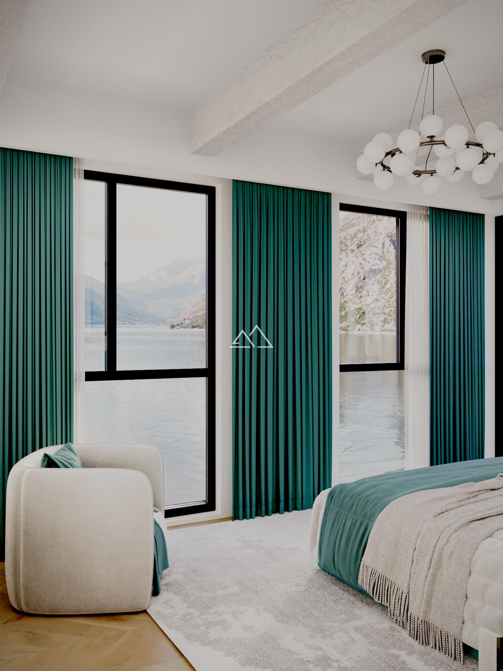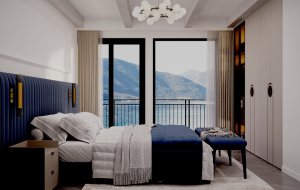 This luxury villa is situated in a prime location, offering breathtaking panoramic views of the Bay of Kotor, the medieval town of Perast, and the iconic islands of Saint George and Our Lady of the Rocks.