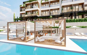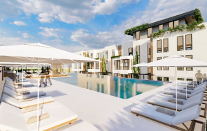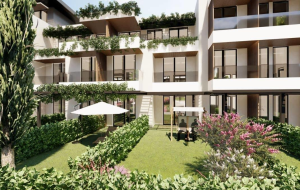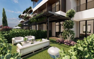 Two-bedroom apartment with a private courtyard in a residential complex with a pool in the suburbs of Herceg-Novi.