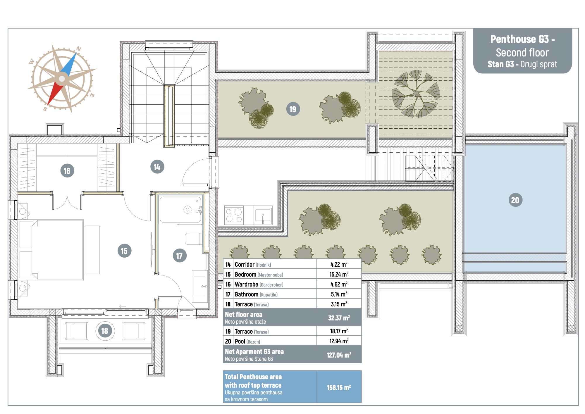 Penthouse with 2 bedrooms and a private pool in a new gated residential complex in Tivat.
