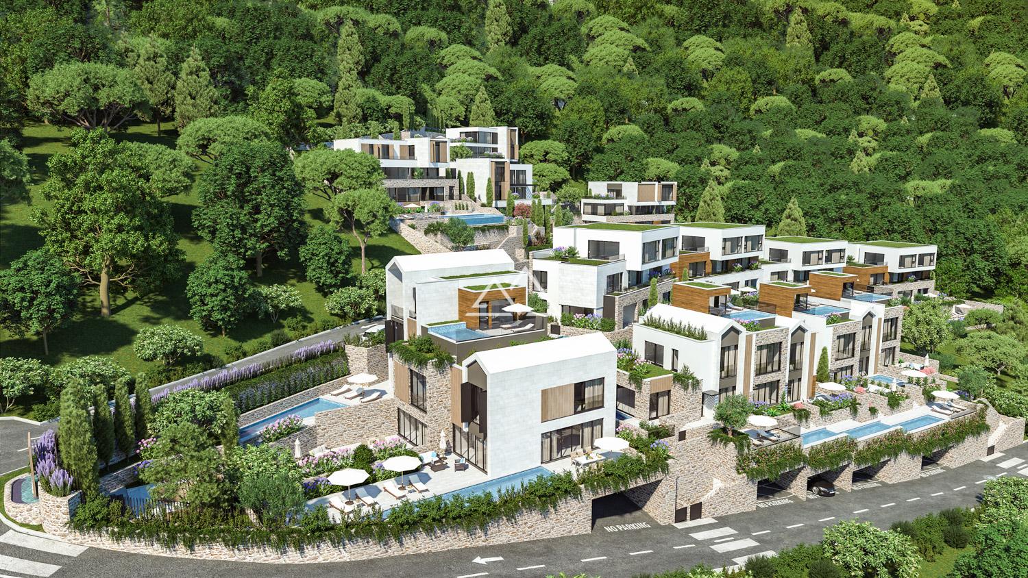 The complex is situated on a small elevation, surrounded by greenery, just 400 meters from the sea and within close proximity to all urban infrastructure.