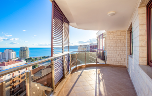 The apartment includes a spacious living room with a dining area, a kitchen, 2 bedrooms, 2 bathrooms, and terraces with panoramic sea views.