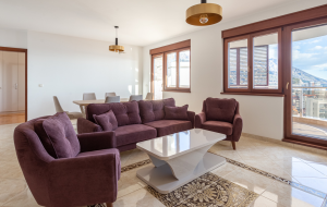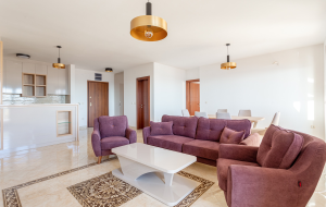 The apartment is fully furnished and ready to move in. It features high-quality finishes, underfloor heating, and a VRV air conditioning system for both cooling and heating. The building is equipped with a solar water heating system. Cable TV, telephone, and high-speed internet connections are available.