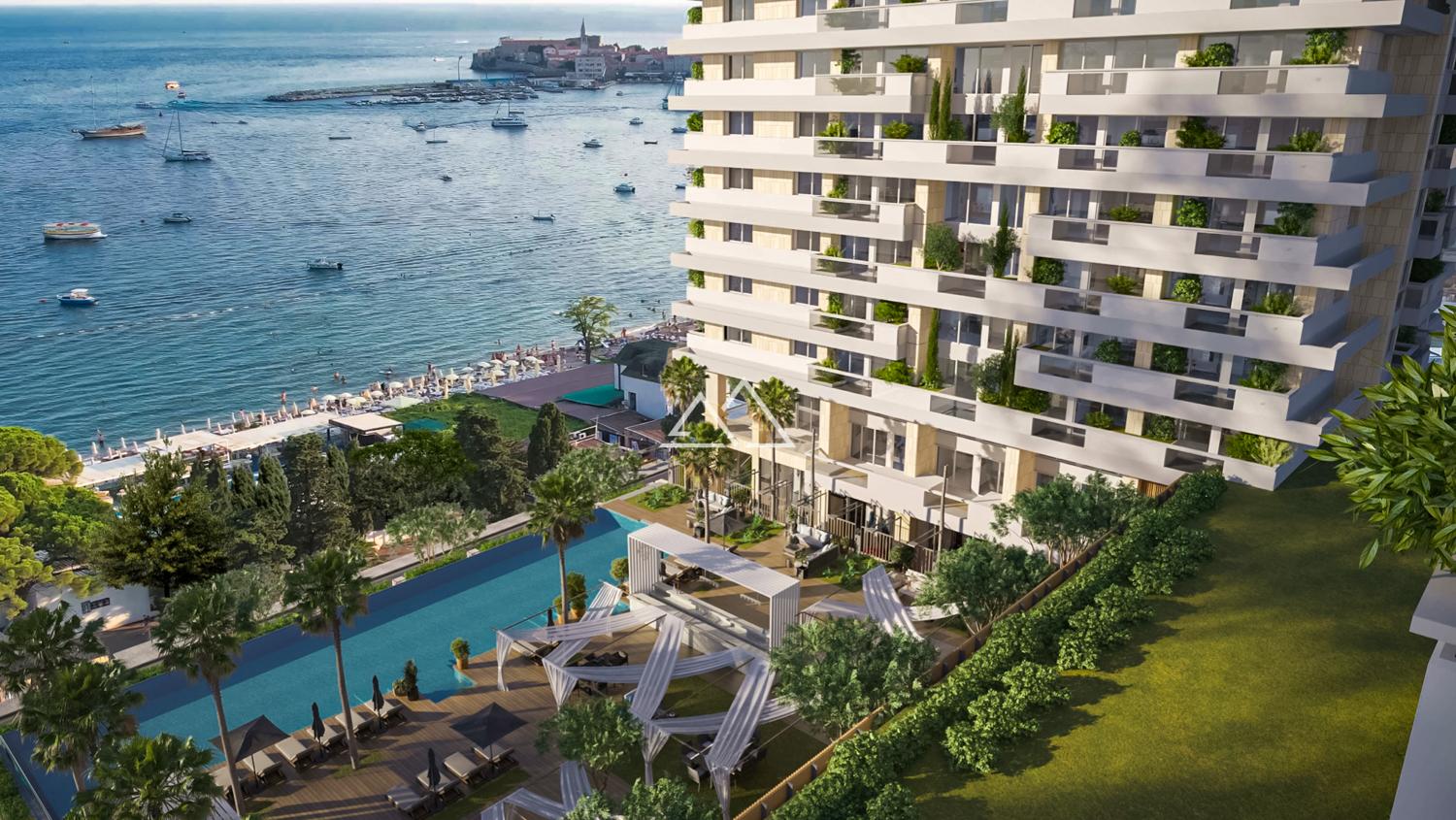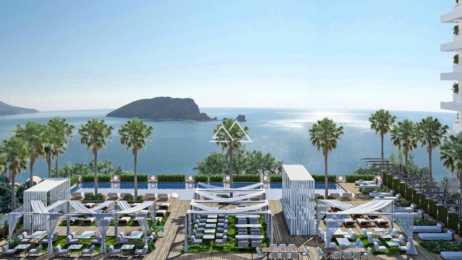 Luxury furnished 3-bedroom apartment in the Riviera residential complex on the first coastline in Budva.