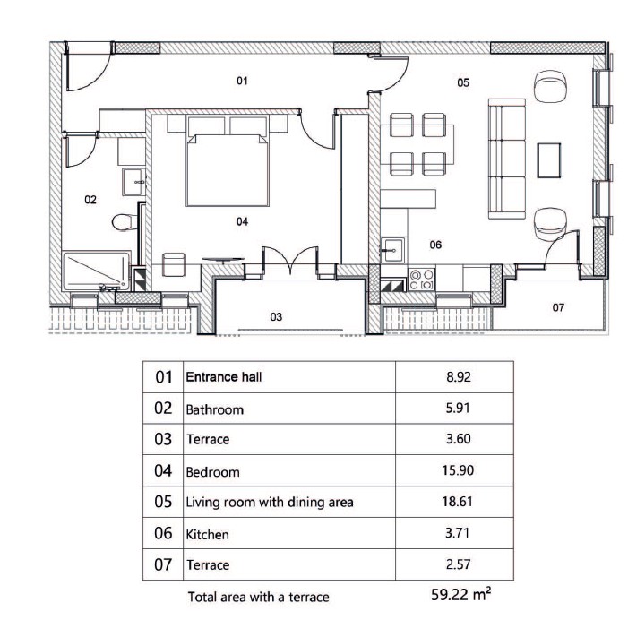 Most of the apartments are equipped with terraces, the majority of which offer panoramic sea views.
