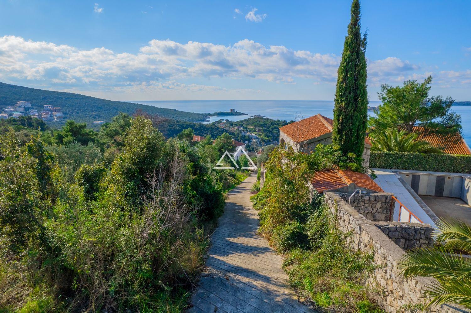 This sought-after coastal retreat boasts a gorgeous beach with crystal-clear waters, easily reachable by regular boat transfers from Herceg Novi or a scenic drive along the breathtaking Bay of Kotor.