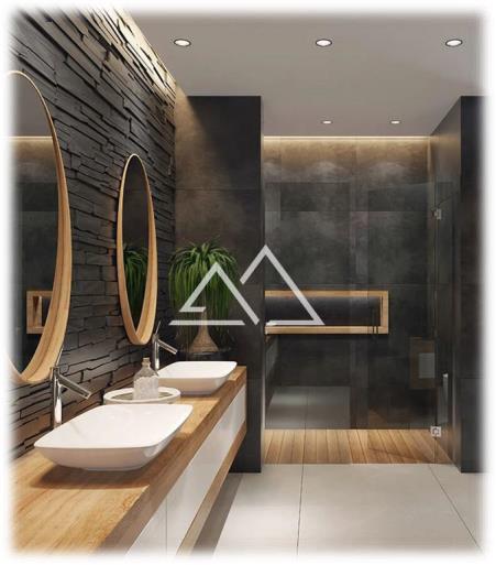 - High-quality finishes: natural stone facade, granite or parquet floors, Italian sanitary ware