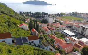 Due to the cascading terrain, the property offers panoramic views of the Adriatic Sea, the Old Town of Budva, and the iconic island of St. Nicholas.
