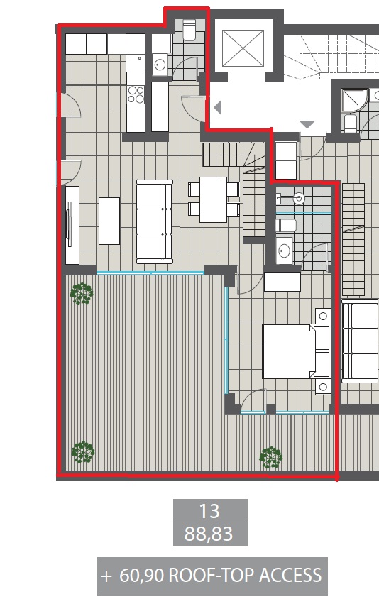 • Access to an exclusive rooftop area of 60.90 m²