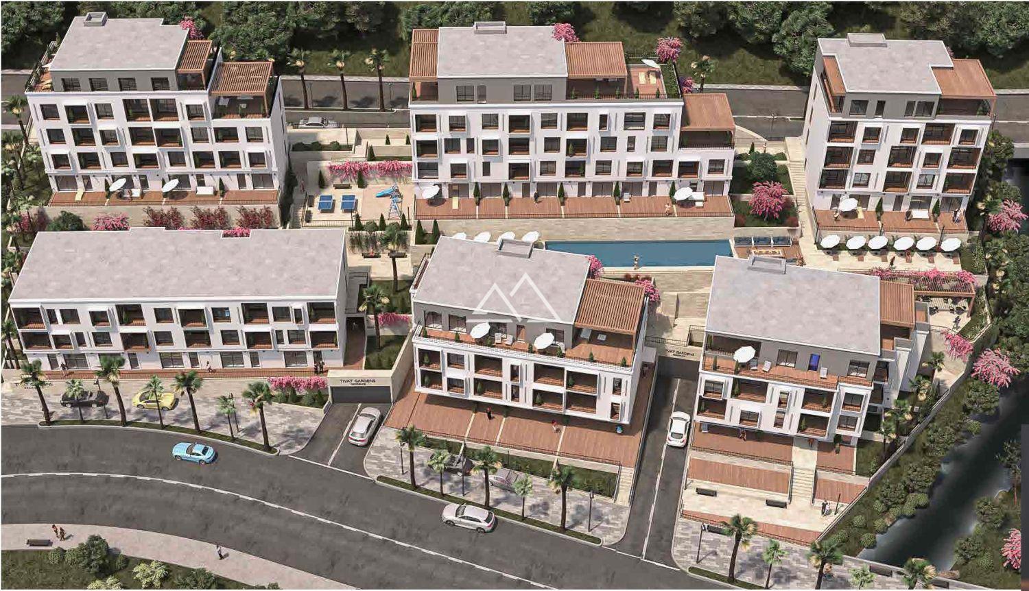 This gated, premium-class residential complex is located in one of Tivat’s most desirable areas — just 400 meters from the prestigious Porto Montenegro marina and within walking distance of the city park and Knightsbridge English school.