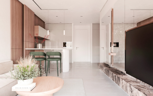 The penthouse offers the perfect combination of urban living and secluded comfort amidst nature. The space is designed with great attention to detail and follows a turnkey concept: it comes with designer furniture, household appliances, and the option for personalized finishing.