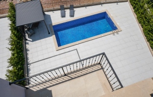The house features a private swimming pool and a dedicated relaxation area, while four stunning beaches with crystal-clear waters are located within a 2 km radius.