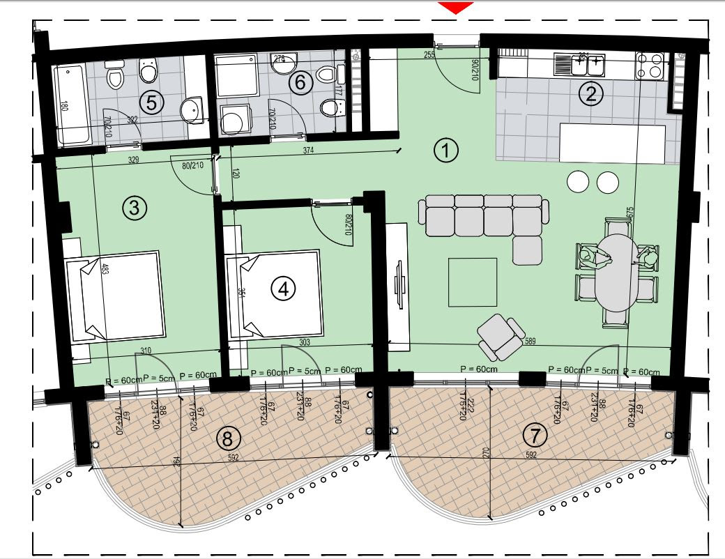 The apartment is move-in ready. All units come with high-quality finishes. Underfloor heating is installed, as well as a VRV air conditioning system that provides both cooling and heating. The building is equipped with a water heating system powered by solar panels. Cable TV and telephone connection are available.