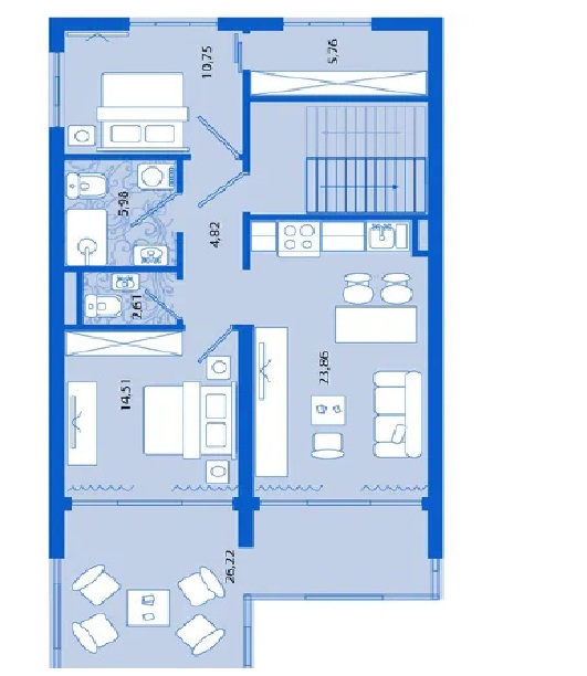 • Large terrace with sea view.