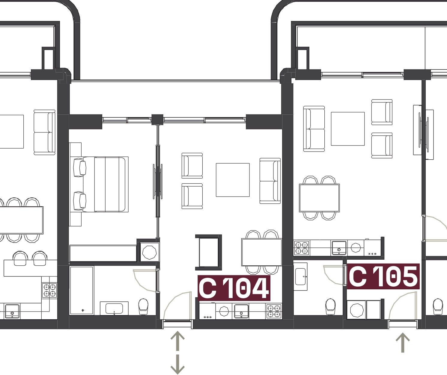 A selection of one- and two-bedroom apartments of various sizes is available for purchase.