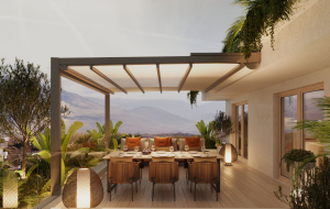 The architecture is designed in a modern style and harmoniously integrates into the Mediterranean landscape. Natural materials are used in the finishing, while olive trees and ornamental plants are planted throughout the territory, creating an atmosphere of coziness and privacy.