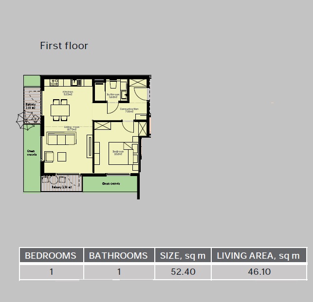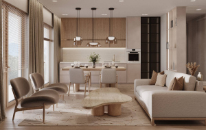 • Kitchen-living room — spacious and bright, with a dining area and relaxation zone