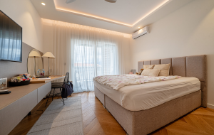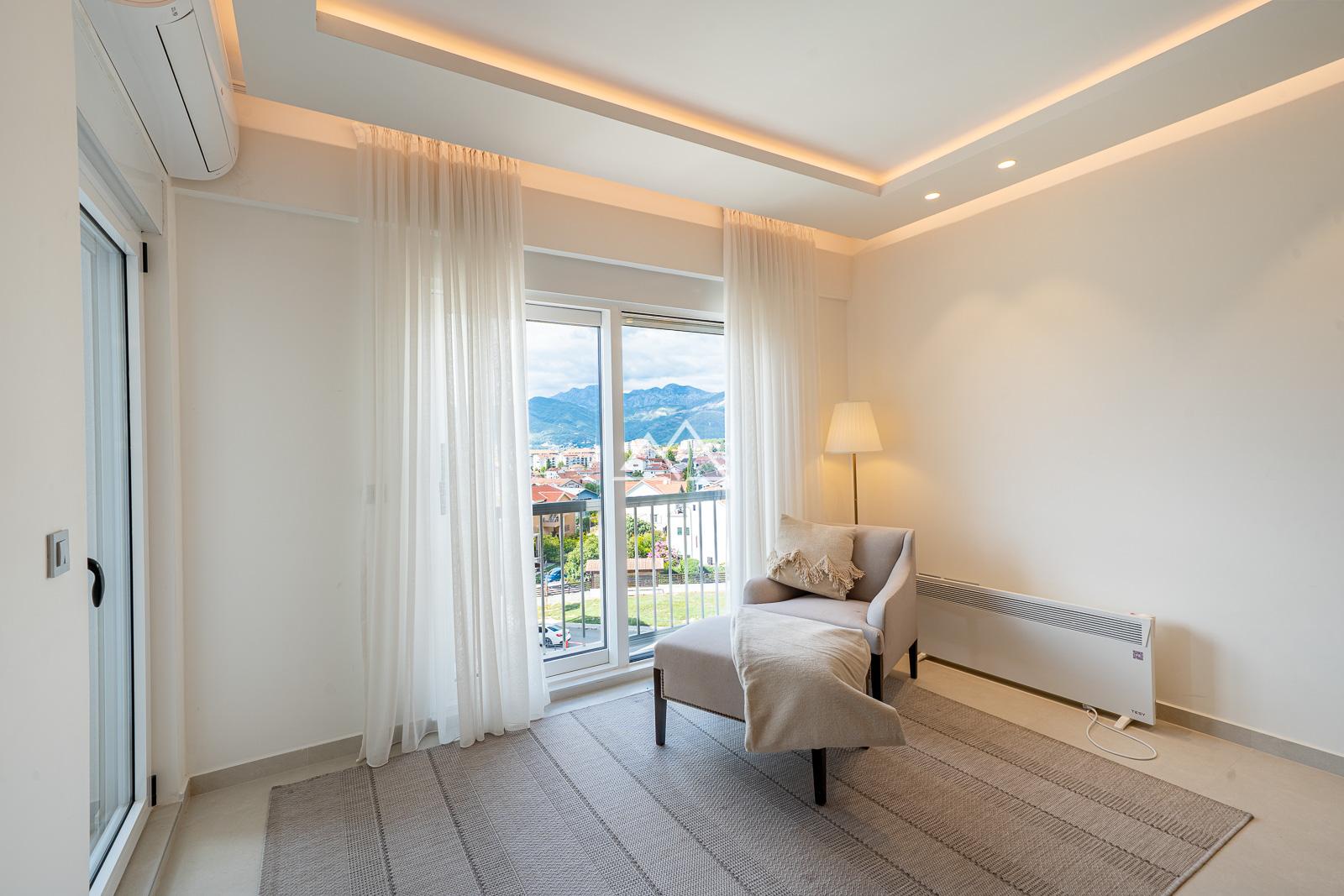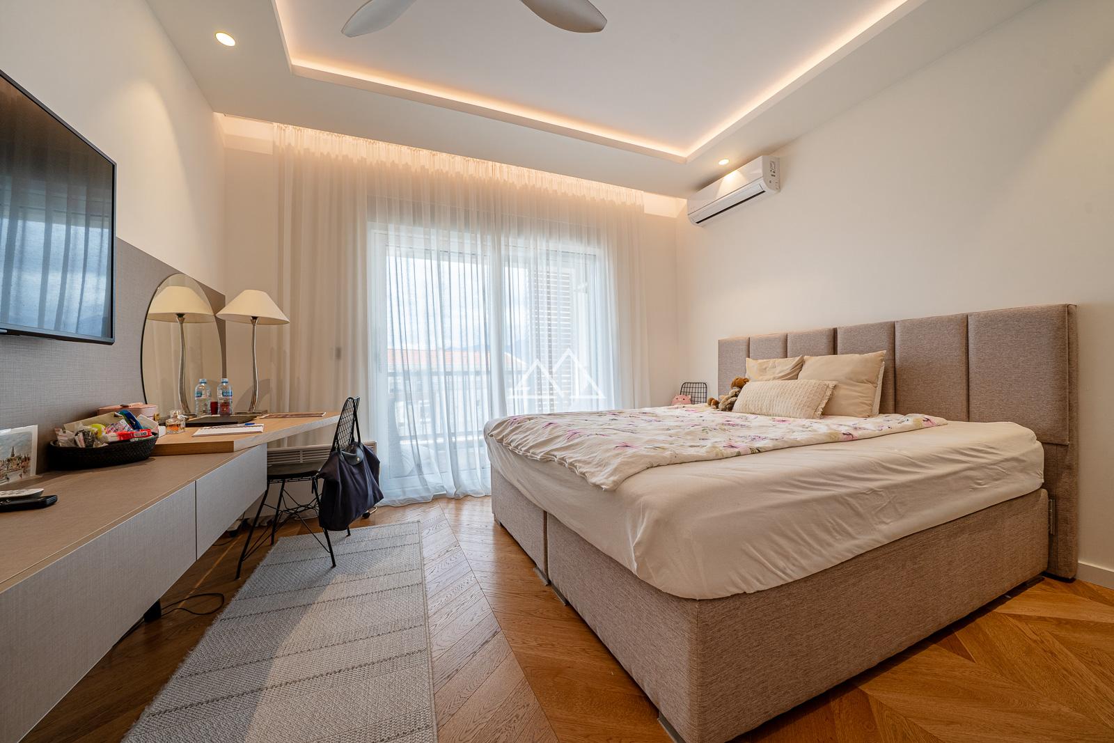 A spacious, fully furnished two-bedroom apartment located in a new building, in a quiet residential area in the center of Tivat.