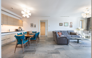 - Bright and spacious open-plan living room with kitchen and dining area