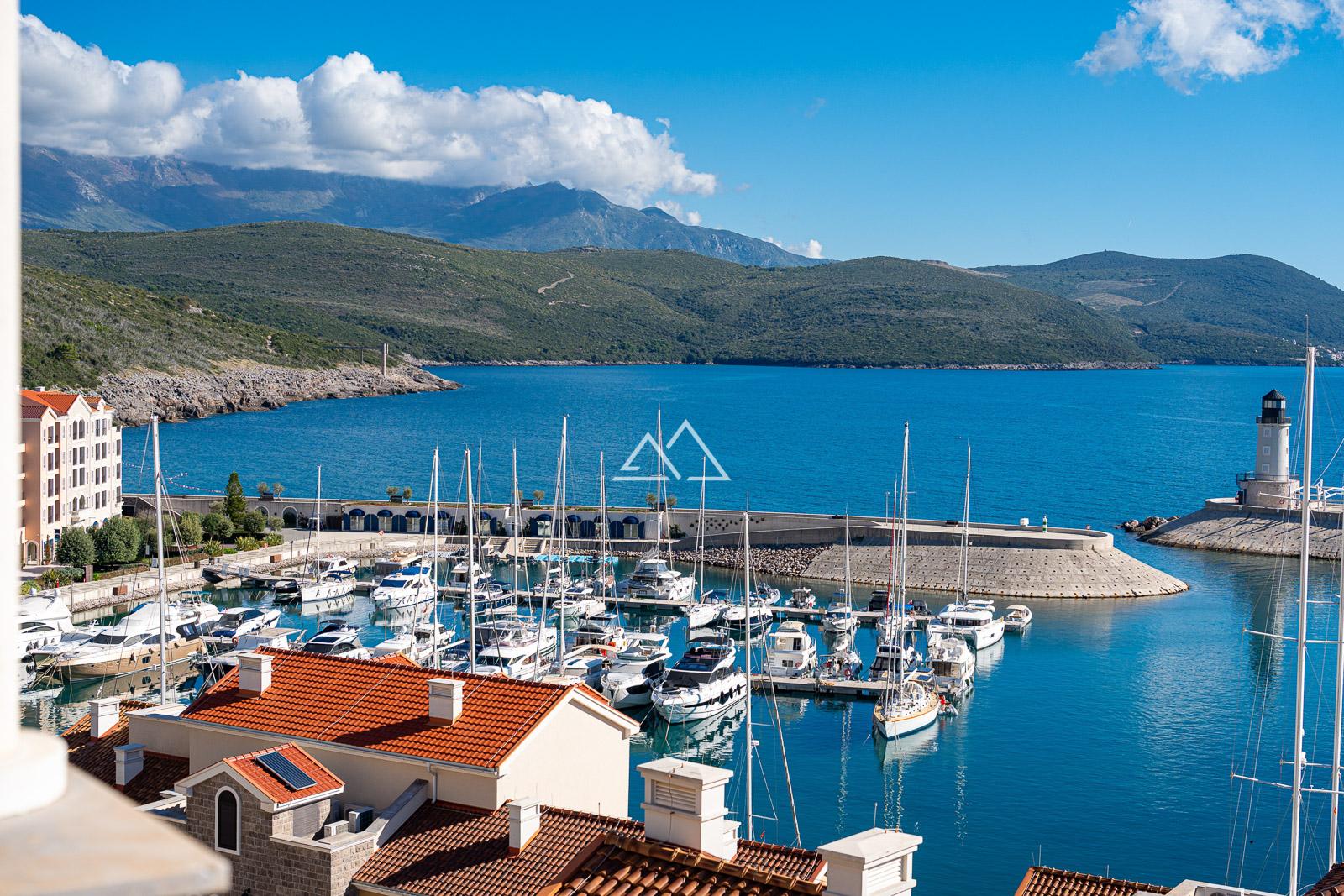 Nestled in the heart of Marina Village, the most exclusive part of the renowned Luštica Bay resort, this luxurious two-bedroom apartment offers 113 m² of refined coastal living. Elevated above the marina and within walking distance of it, the residence captures breathtaking panoramic views of the Adriatic Sea, the picturesque village, and the surrounding bay, striking the perfect balance between privacy, natural light, and sophistication.