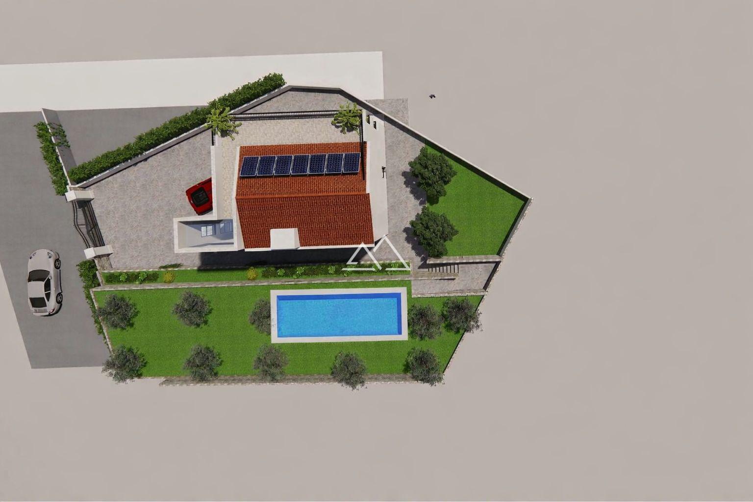 The villa is designed according to the concept of an energy-independent home: solar panels with battery storage, the possibility of storing and selling electricity back to the grid, underfloor heating, and inverter split systems. The property is designed with provision for an electric vehicle charging station.