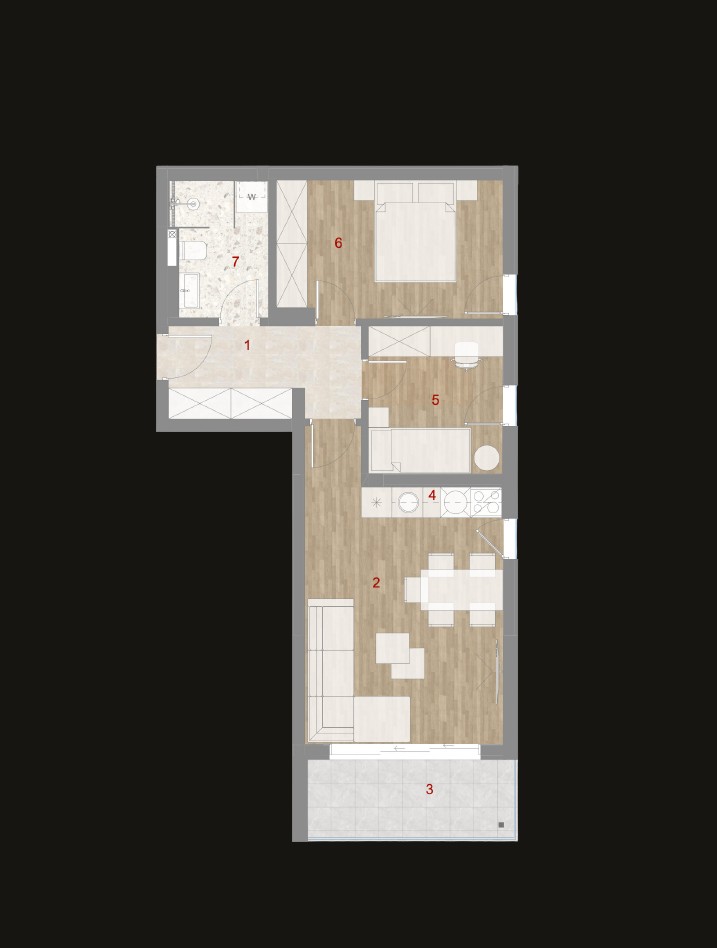 The apartment is sold with final finishing and built-in sanitary ware.