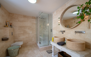 • two bedrooms, each with its own bathroom