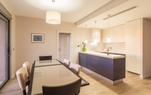 Two bedroom apartment with living room and two bathrooms is situated in new residential development. There is access to the spacious terrace from the living room. The terrace opens on wonderful city and bay view.