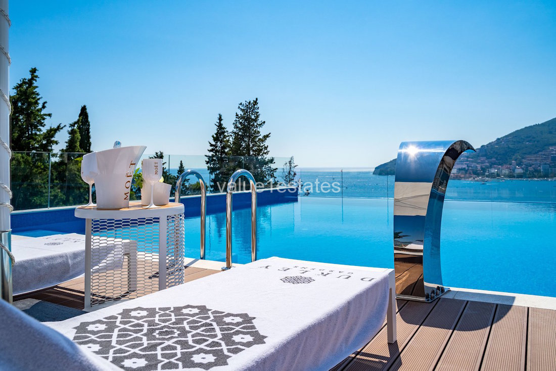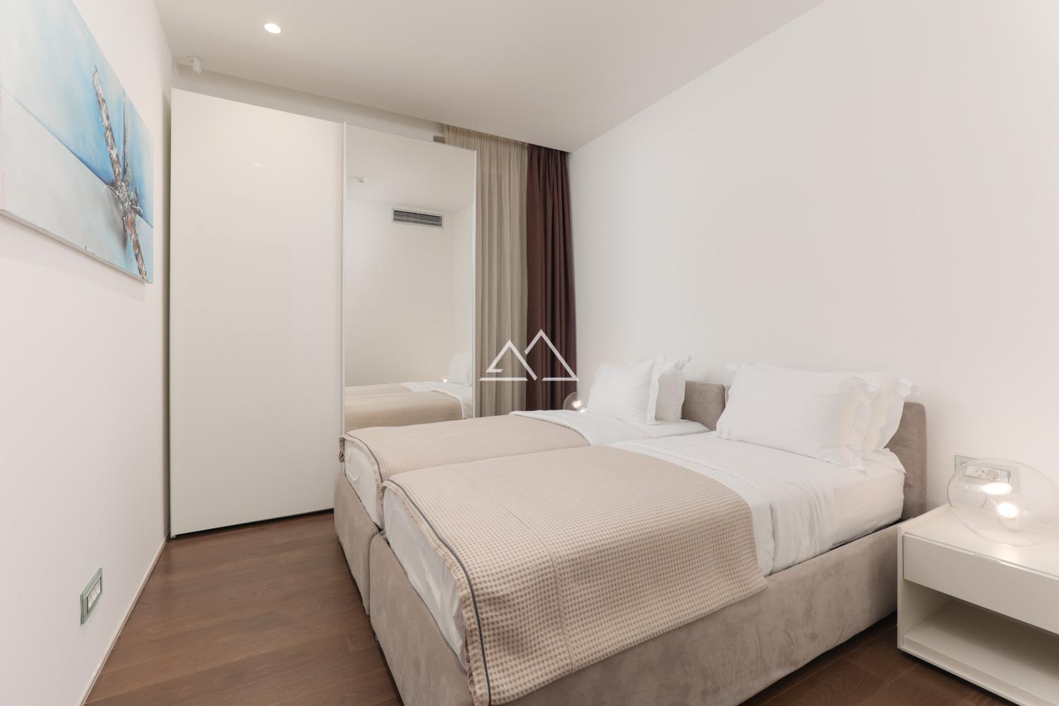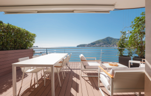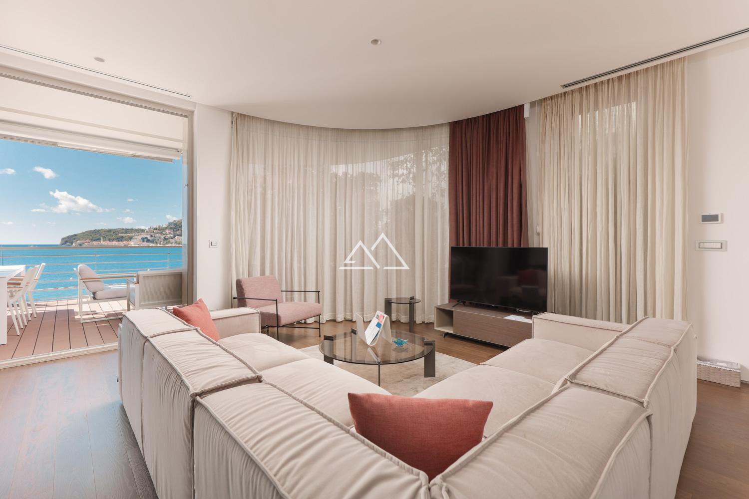 Apartment with stunning view over the sea located in luxury waterfront residental complex Dukley Gardens. This complex has great location on Zavala peninsula in one of the most upscale and popular touristic places of Montenegro – Budva Riviera, surrounded by the green Mediterranean gardens, on the downward slope to the sandy Adriatic shore.
