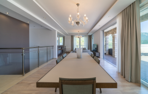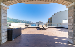 This offer is distinguished by modern style, high quality interior finish and high-end furniture. Duplex comprises spacious living room with kitchen and dining area, with access to a huge (50 m2) terrace with amazing sea and mountain view, 3 bedrooms, 2 bathrooms, guest toilet and small private courtyard (cca 9 m2).