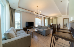 Duplex is fully furnished with Italian furniture and equipped with home appliances – ready to move-in.